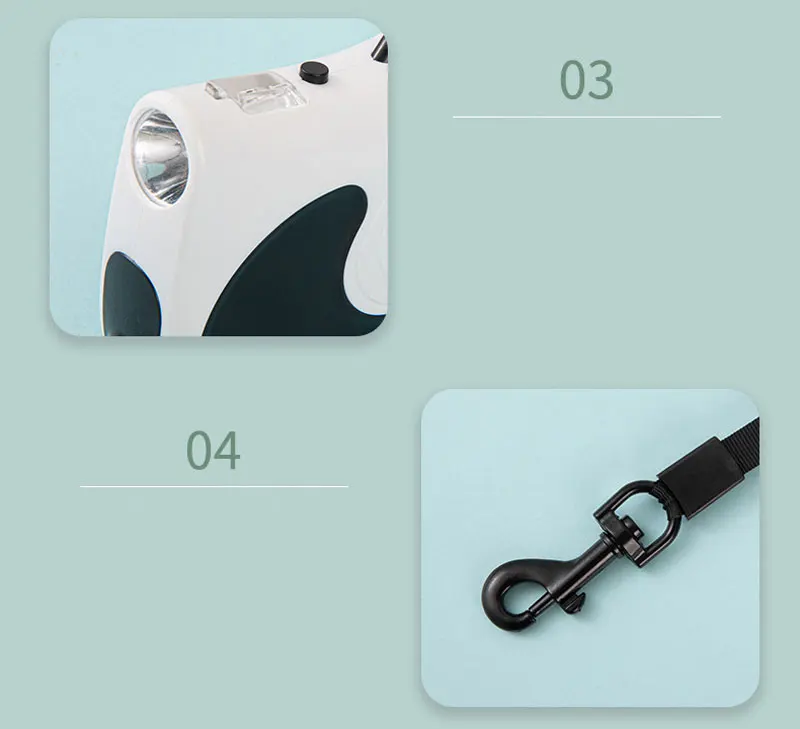 [Retractable and Waterproof] This retractable dog leash has built-in stainless steel retraction spring which is retraction tested for 30,000. Retraction smoothly without any jams. And the internal features waterproof silicone gasket design, practical for daily waterproof or splash water.
